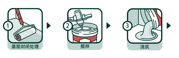 | 施工事項: | 施工面積較大時,應設置分隔縫。澆筑厚度不得低于5mm,澆筑后用鋸齒抹刀或刮板等輔助攤平,并用消泡滾筒進行輔助消泡。攪拌好的砂漿須在30分鐘內用完。施工24小時后,須進行打磨拋光及罩面處理。 |